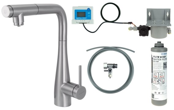 Bateria kuchenna z zestawem do filtracji wody z wyciąganą wylewką