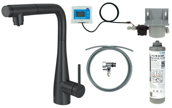 Bateria kuchenna z zestawem do filtracji wody z wyciąganą wylewką