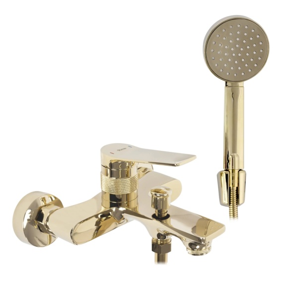 Prezentujemy Państwu piękną, niezwykle funkcjonalną i nowoczesną baterię wannową. Jest to produkt, który w doskonały sposób wypełni Państwa przestrzeń łazienkową zachowując nienaganny wygląd i estetykę wnętrza. Bateria jest przystosowana do montażu ściennego. Została wykonana z mosiądzu pokrytego potrójną złotą warstwą. Dzięki specjalnej fazie produkcji jest trwała i łatwa w utrzymaniu czystości.
