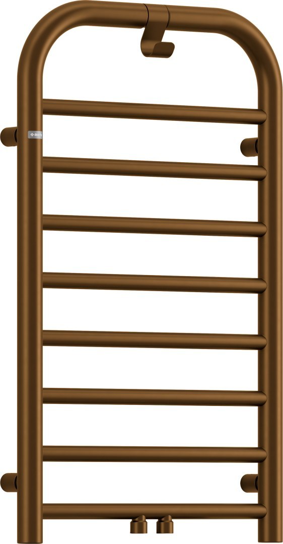 Stylowy grzejnik łazienkowy w matowym kolorze brązowym, rozmiar 1570x500, wyróżnia się obłymi kształtami i wysoką jakością wykonania. Wyposażony jest w użyteczny haczyk na ręczniki lub szlafrok. Jest to hybrydowy model: wodno-elektryczny z możliwością dodania grzałki 400W, która zapewni dodatkowe ogrzewanie lub suszenie ręczników poza sezonem grzewczym. Do grzejnika należy dokupić zawór. Zarówno opcjonalna grzałka, jak i niezbędny zawór dostępne są w tym samym kolorze co grzejnik.
