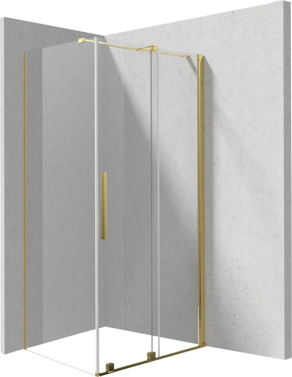 Kabina PRIZMA to synonim stylu i funkcjonalności, łączący wygodę przesuwnego walk-in ze ścianką prysznicową, które razem tworzą harmonijną całość. Wykonana z trwałego, transparentnego szkła hartowanego i wykończona w błyszczącym złotym kolorze, stanowi elegancki akcent w nowoczesnej łazience. Powłoka hydrofobowa Active Cover zastosowana na obu elementach skutecznie chroni przed osadzaniem się kamienia i ułatwia utrzymanie ich w czystości. Stabilność całej konstrukcji zapewniają solidne relingi usztywniające, które podnoszą komfort użytkowania i trwałość kabiny. Dzięki połączeniu innowacyjnego designu z praktycznymi rozwiązaniami, PRIZMA to idealny wybór dla tych, którzy nie chcą iść na kompromis między estetyką a wygodą.