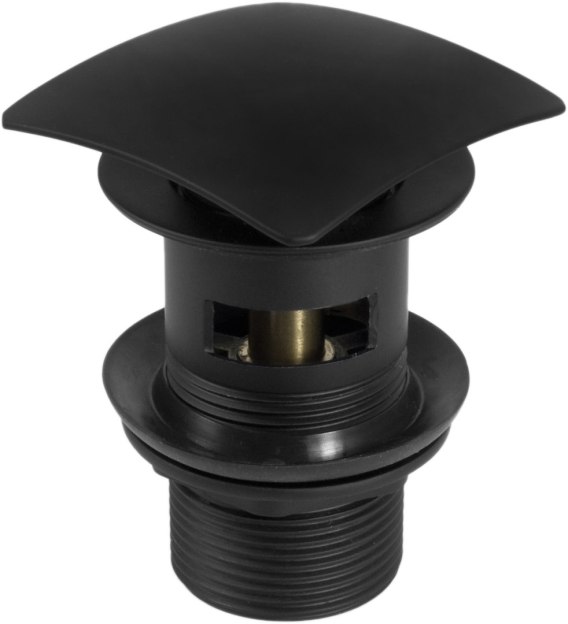Kwadratowy korek click-clack przeznaczony jest do bidetów oraz umywalek z przelewem. Produkt wykonany został z wysokiej jakości mosiądzu. Otwarcie i zamknięcie odpływu następuje przez naciśnięcie korka palcem. Produkt wykończony jest w eleganckim, matowym czarnym kolorze.