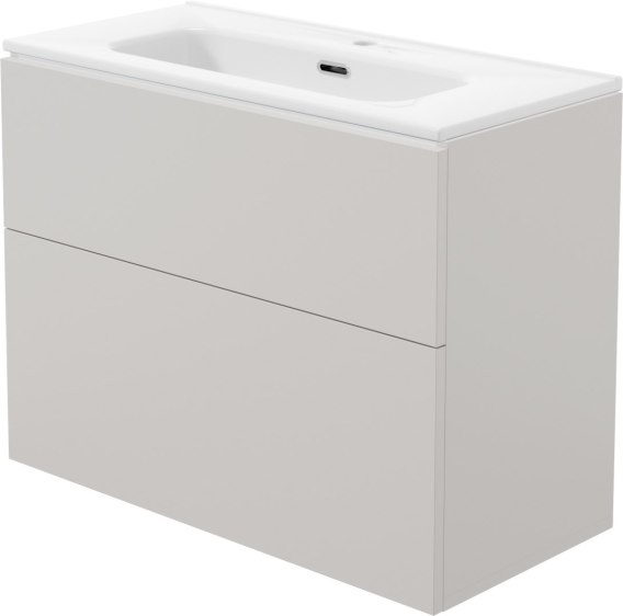 Umywalka wpuszczana doskonale integruje się z blatem szafki, wyposażona jest w przelew zapobiegający przelaniu oraz otwór na baterię, co ułatwia montaż. Szafka w kaszmirowym kolorze wyróżnia się dwoma pojemnymi szufladami z cichym domykiem i nowoczesnym mechanizmem push to open, a lakierowany blat z otworem na syfon idealnie komponuje się z umywalką nablatową. Zestaw jest dostarczany w pełni zmontowany i gotowy do instalacji, wykonany w Polsce z dbałością o każdy detal, łącząc elegancję, wygodę i trwałość.