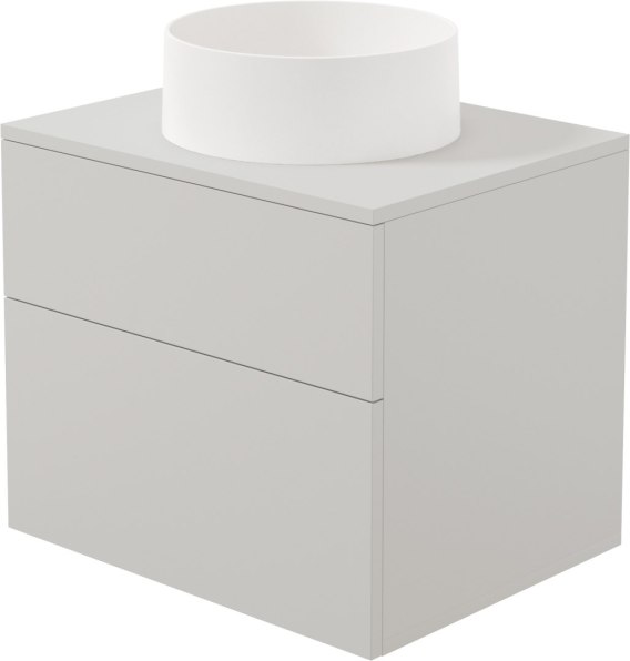 Szafka urzeka minimalistycznym i funkcjonalnym designem. Kaszmirowy kolor nadaje jej niezwykłej harmonii i subtelnego uroku. Dwie przestronne szuflady z pełnym wysuwem i cichym domykiem zapewniają wyjątkowy komfort użytkowania, a nowoczesny mechanizm push to open podkreśla jej innowacyjny charakter. Lakierowany blat z otworem na syfon idealnie współgra z umywalką nablatową, tworząc harmonijną i spójną kompozycję.