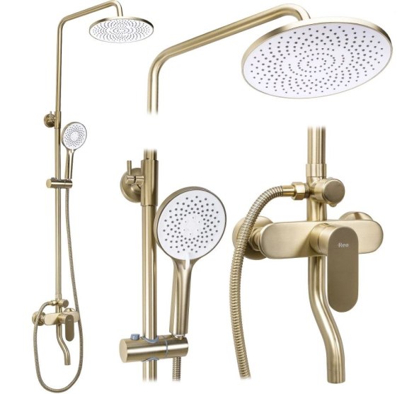 Zestaw prysznicowy w eleganckim kolorze złota szczotkowanego to nowoczesne i funkcjonalne rozwiązanie, które podkreśli wyjątkowy charakter Twojej łazienki. Minimalistyczny design w połączeniu z luksusowym wykończeniem sprawia, że zestaw świetnie komponuje się zarówno w aranżacjach glamour, jak i w nowoczesnych wnętrzach.
