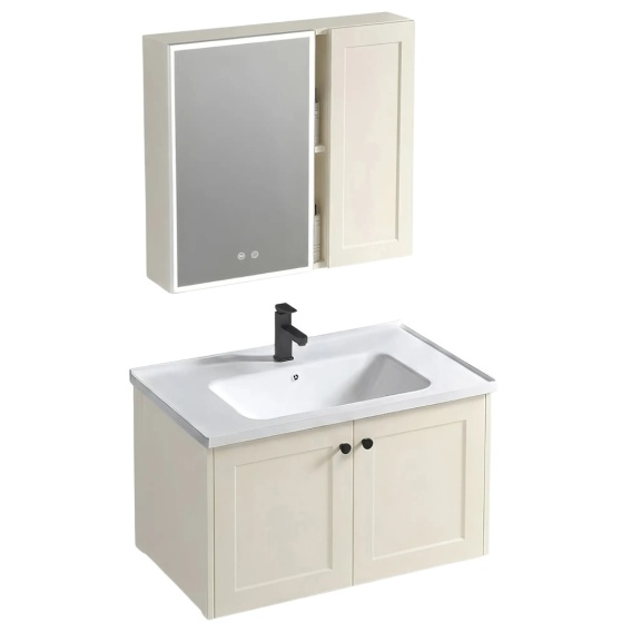 - Dodatkowa szafka nad umywalkę oferująca dyskretne i uporządkowane miejsce na kosmetyki oraz akcesoria łazienkowe.