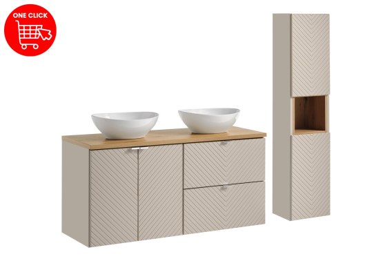 • Zestaw meblowy 120cm z blatem, 2 umywalkami nablatowymi Lola i szafką wysoką