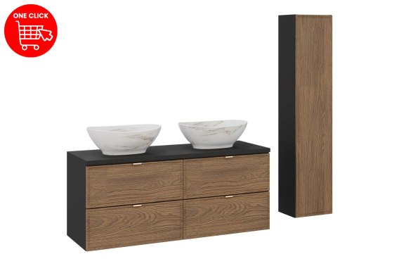 Zestaw meblowy 120cm z blatem, 2 umywalkami nablatowymi Pati i szafką wysoką