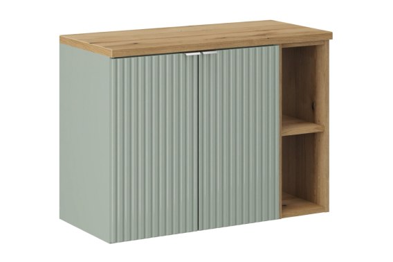 Funkcjonalna i stylowa szafka pod umywalkę w połączeniu z eleganckim blatem oraz praktyczną szafką pod blat stworzą harmonijną całość, która z pewnością zachwyci Twoich gości. Frezowane ryfle pionowe na fronta