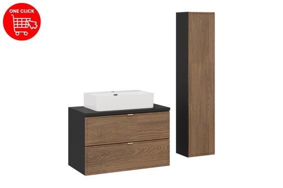 Zestaw meblowy 80cm z blatem, umywalką nablatową Trust i szafką wysoką