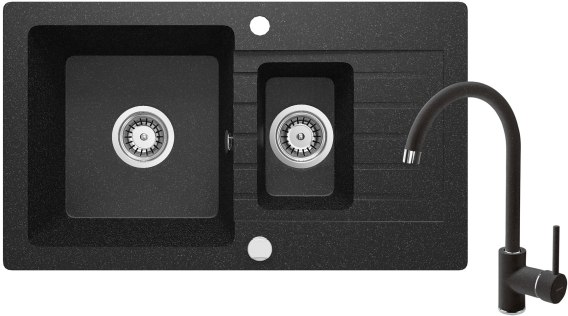 Zlewozmywak granitowy z baterią 1.5-komorowy z ociekaczem